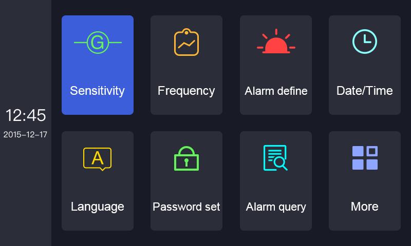 4.Sensitivity calibration: The only sensitivity calibration display in the world. When the calibration area detects sensitivity, the current adjustment area indicator lights up, prompting the operator's current adjustment area. Other uncalibrated areas will not be detected, which is convenient for the user to determine the positioning. Adjust the calibration sensitivity
