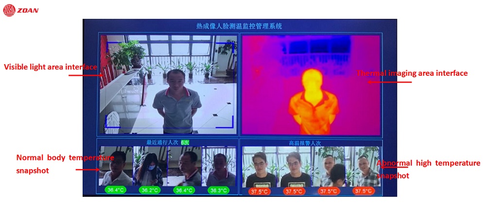1. Cihazın gerçek zamanlı görüntü ekranı aracılığıyla sıcaklık ve insan yüzünü test ederek yakalanan görüntünün yanı sıra, Internet Explorer'a giriş yapmak, termal görüntüleme ölçümü, kalibrasyon, tarama ve parametre ayarları için de kullanılabilir: